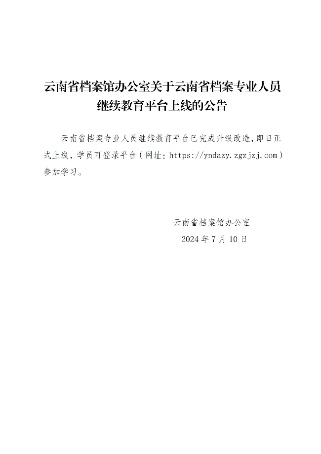 云南省档案馆办公室关于云南省档案专业人员继续教育平台上线的公告