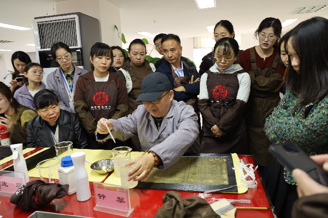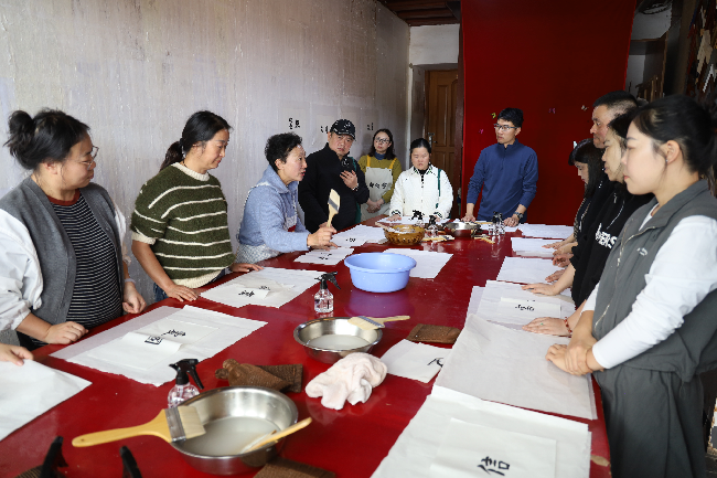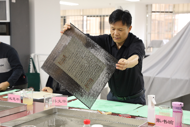 云南省非物质文化遗产滇裱传承人张惠玲老师为学员讲授滇裱技术在档案修复中的传承与创新