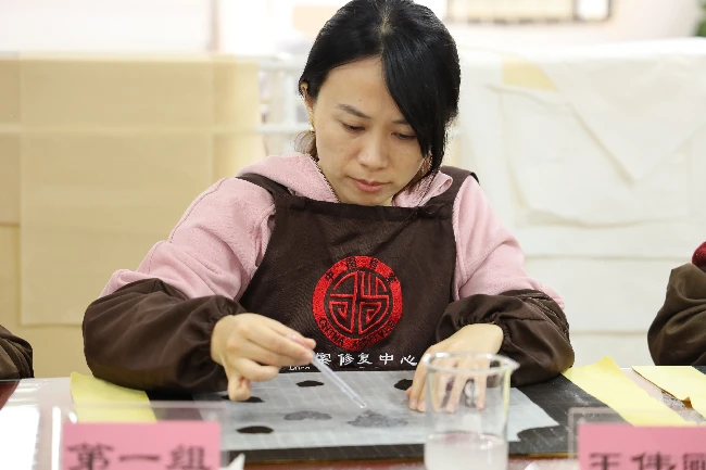 南京大学图书馆原副研究馆员、国家古籍保护中心传习所导师邱晓刚讲授并演示档案手工滴浆修复技术