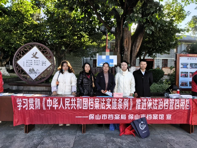 保山市档案局、档案馆在保岫广场设点开展宣传活动,聚焦《中华人民共和国档案法》及其实施条例等档案法律法规,向群众宣讲法律知识和相关政策,介绍档案查阅利用的途径和方法,现场解答群众关于“如何利用档案解决房产纠纷”、“毕业后个人档案去哪里了”、“跨地区婚姻档案怎样调取”等问题咨询。通过面对面开展普法宣传活动,进一步增强群众的法治意识。