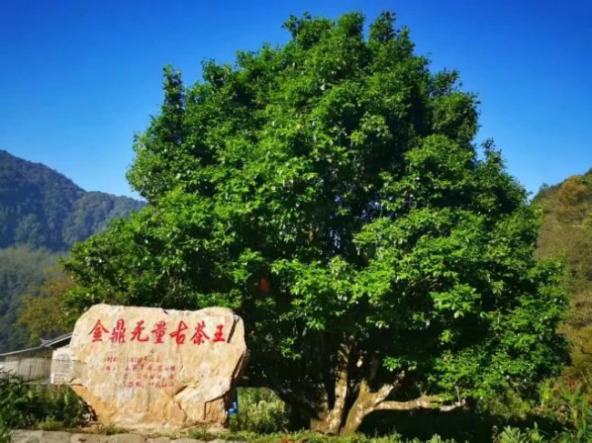 在景东县林街乡,生长着一株被誉为“茶界明星”的金鼎无量古茶王。这株野生型古茶树树高8.9米,树幅7×6.6米,最大基部干围285厘米,被当地村民亲切地称为“茶树老祖”。云南省农科院茶叶研究所专家曾多次实地考察,认定其为目前发现的最古老人工种植野生型古茶树,堪称人类栽培、驯化野生茶树的活标本。