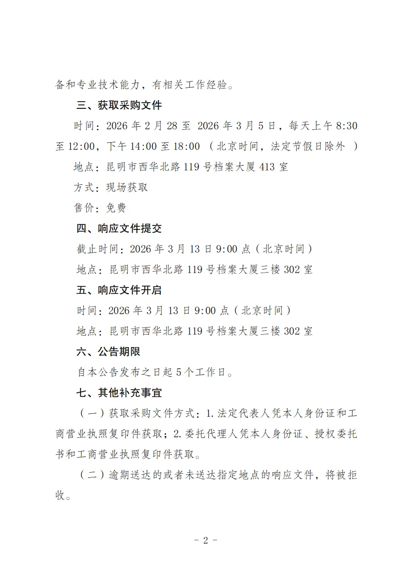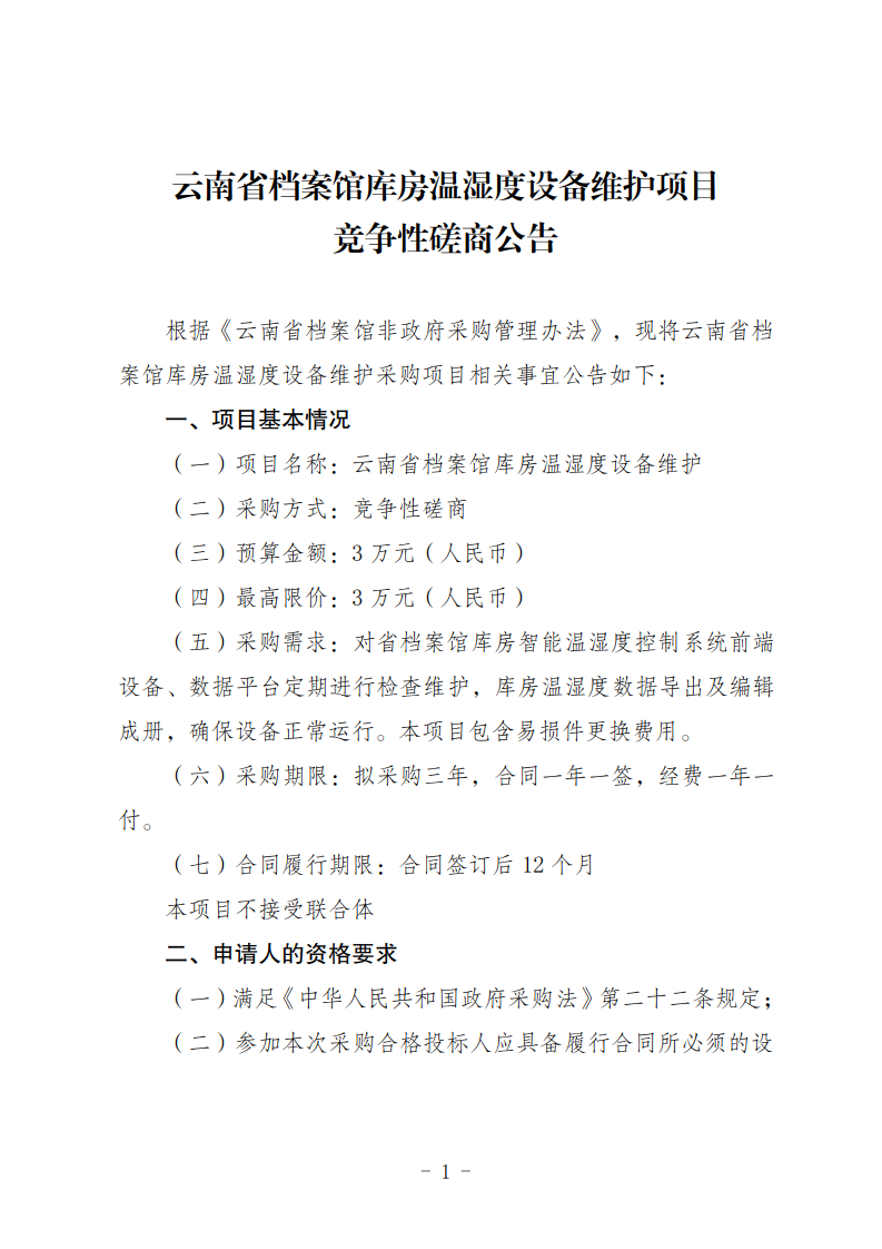 云南省档案馆库房温湿度设备维护项目竞争性磋商公告