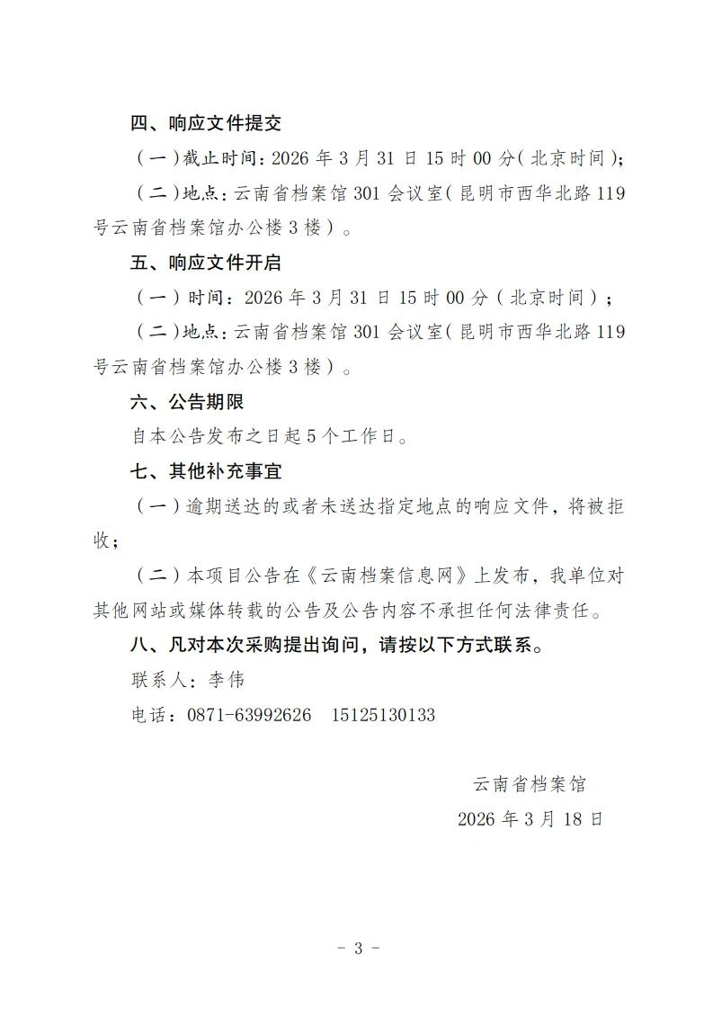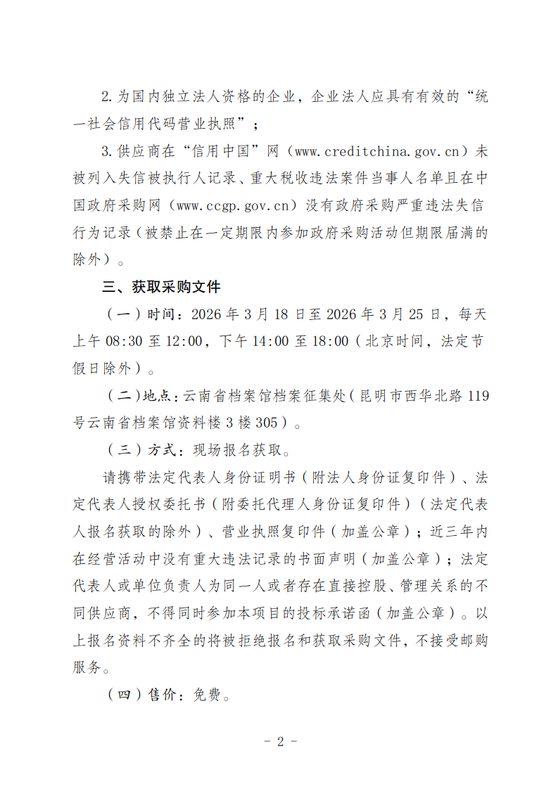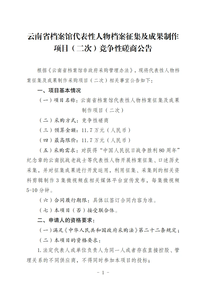 云南省档案馆代表性人物档案征集及成果制作项目(二次)竞争性磋商公告