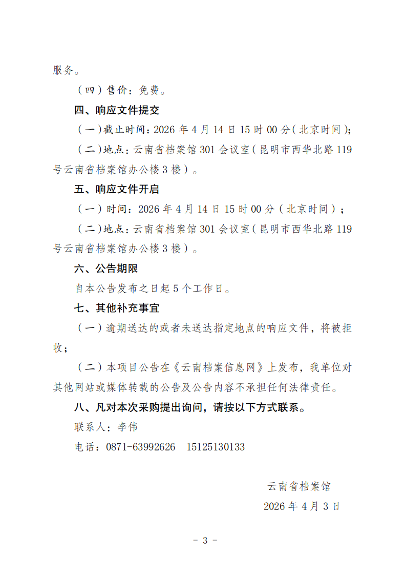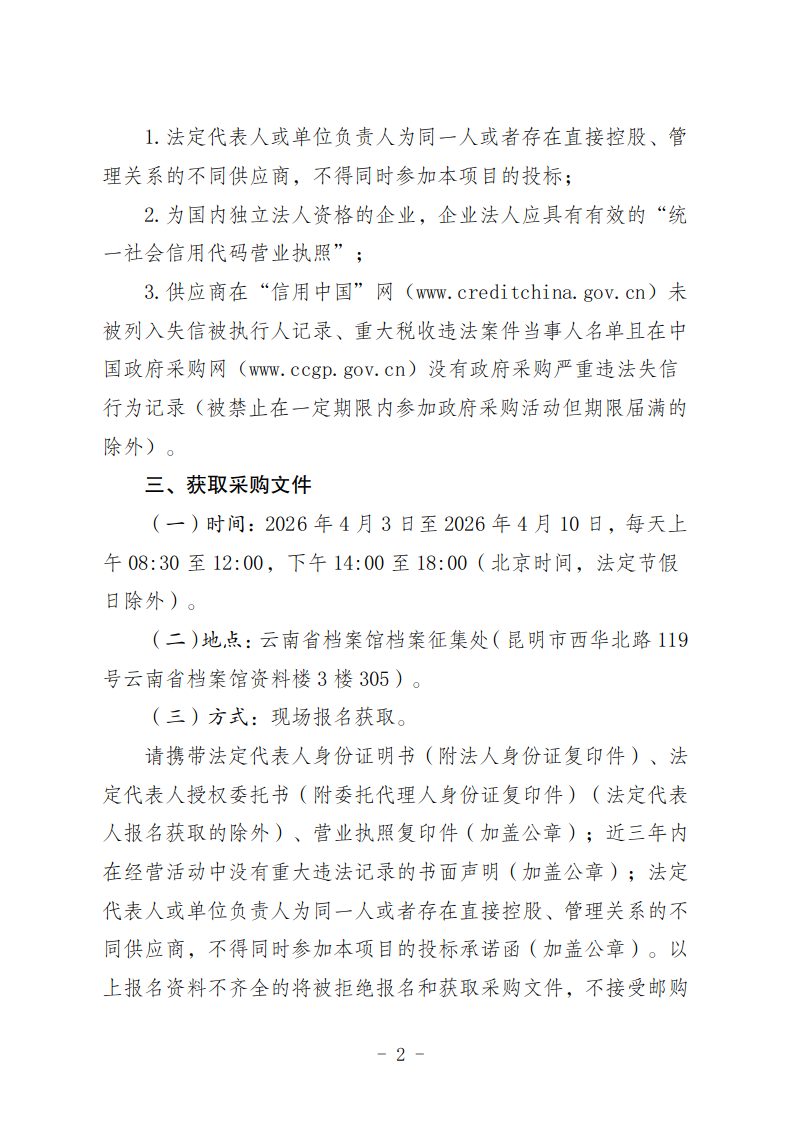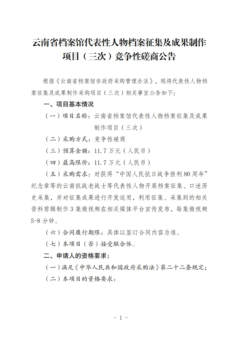 云南省档案馆代表性人物档案征集及成果制作项目(三次)竞争性磋商公告